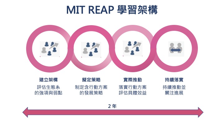 麻省理工學院區域創業加速計畫(MIT REAP)是由麻省理工學院發起的一項全球性倡議,旨在協助各地區加速經濟成長與創新導向的創業活動。透過為期兩年的學習合作過程,MIT REAP 匯聚了關鍵的區域利害關係人——政府、學術界、創業者、風險資本以及企業——組成一個統一團隊,攜手推動系統性的變革。